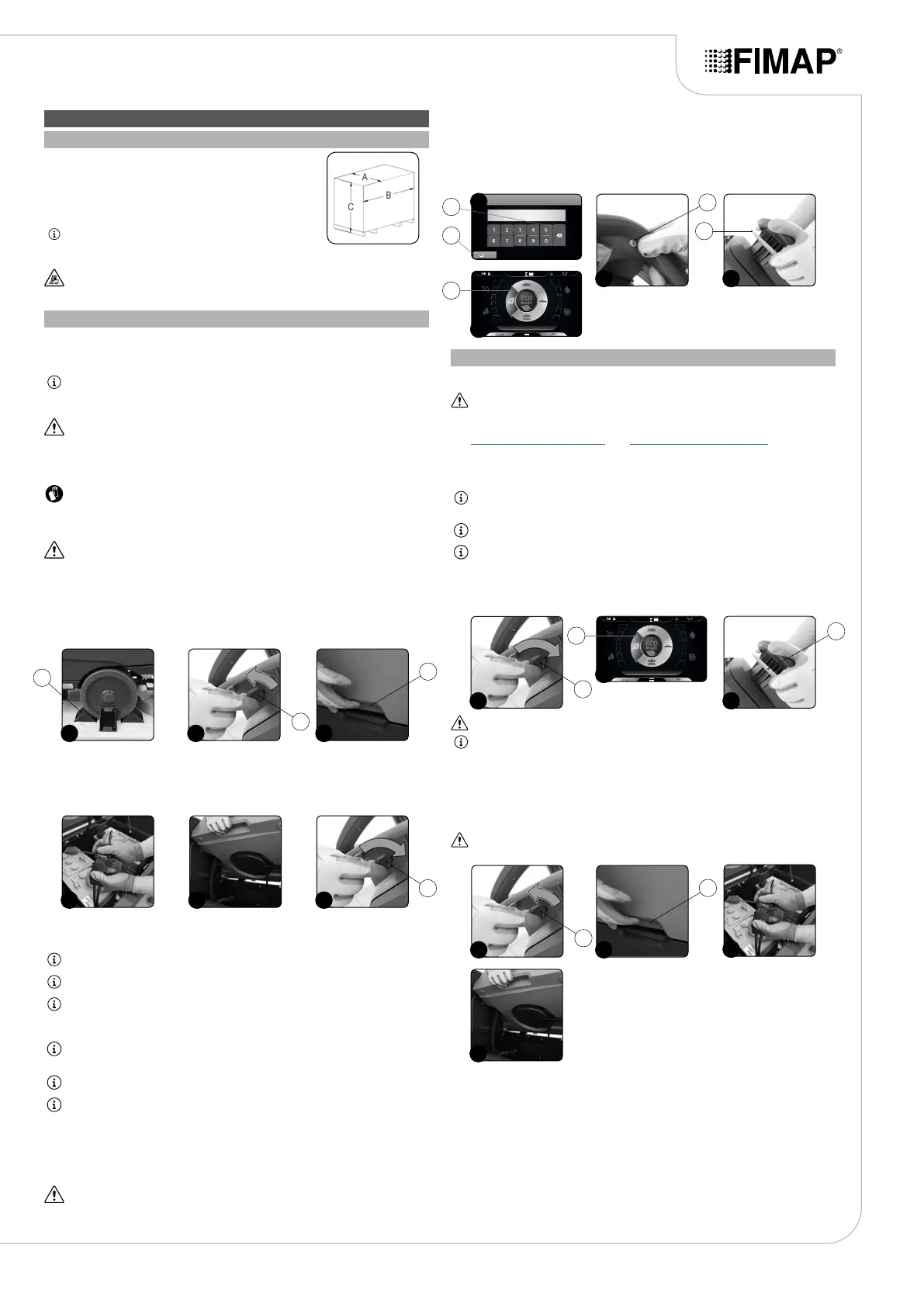 WARNING: the machine is contained in specic packaging materials, whose elements (plastic