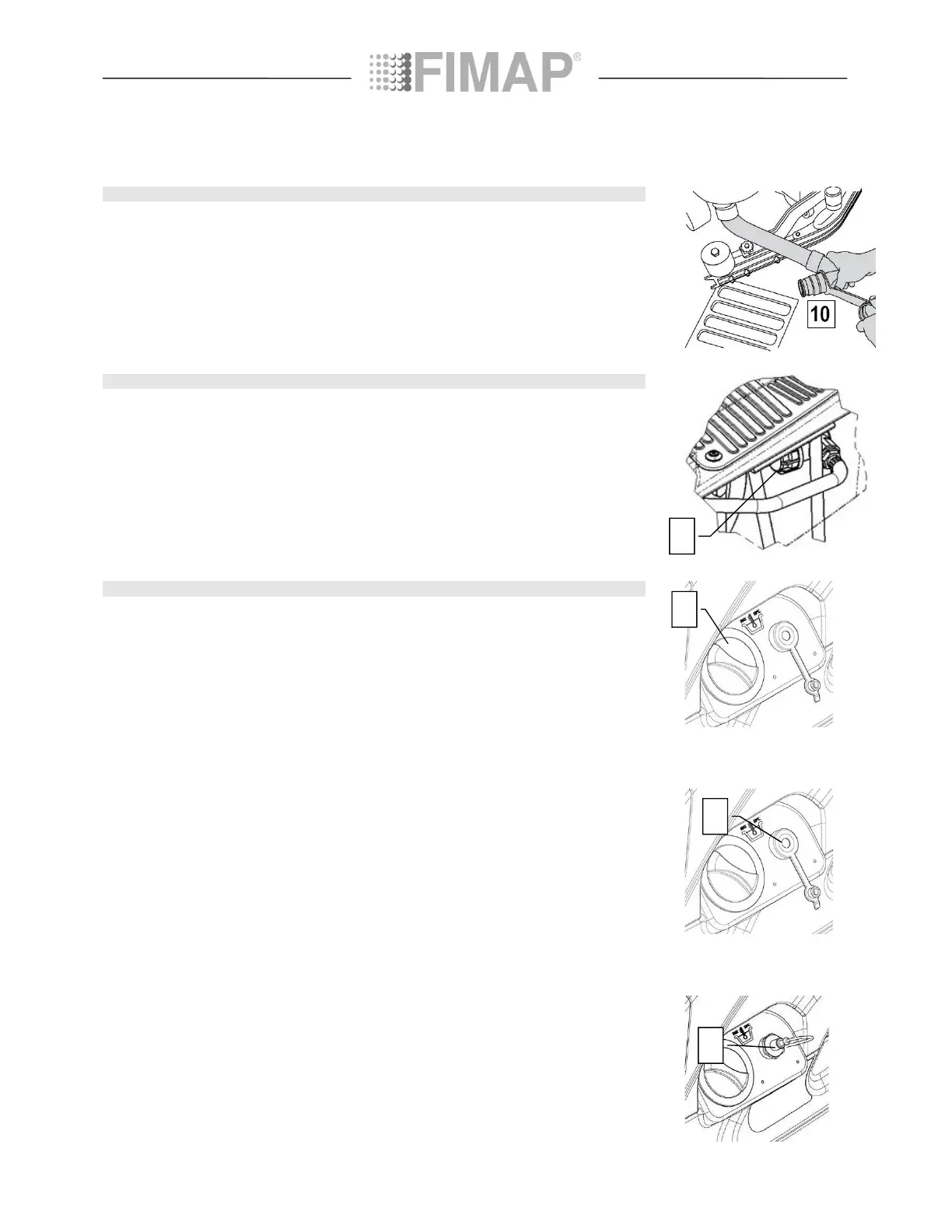 Check the cap of the drainage tube (10) (on the rear of the machine) is correctly closed.