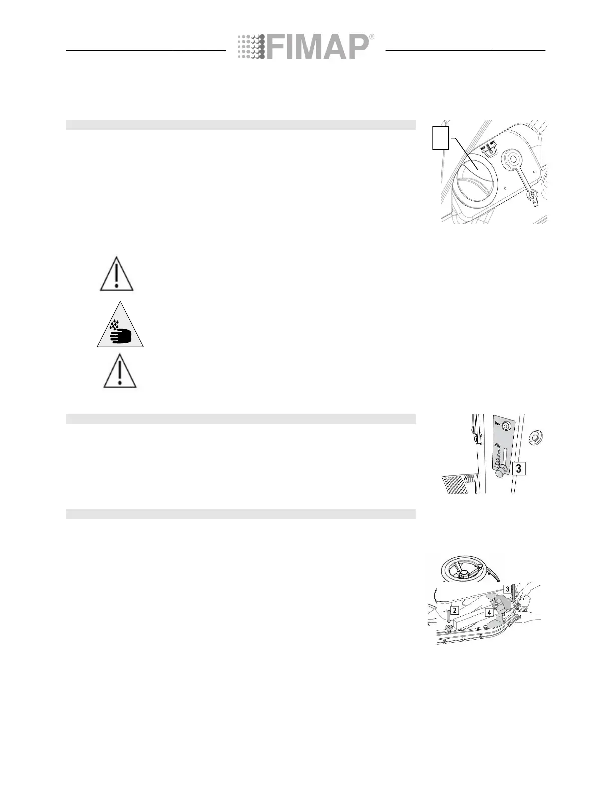 Raise the squeegee connection by means of the left lever (1) turning it clockwise into the vertical positi