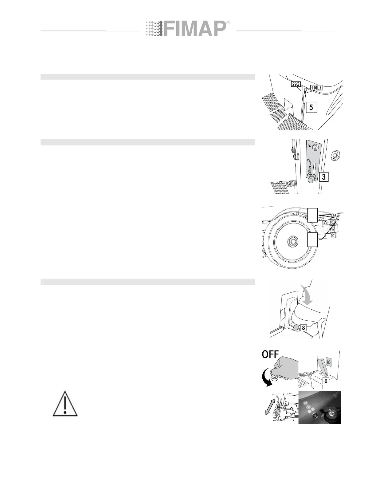 If problems occur during work, turn the machine off, turn the key in the OFF position, engage the parking brake