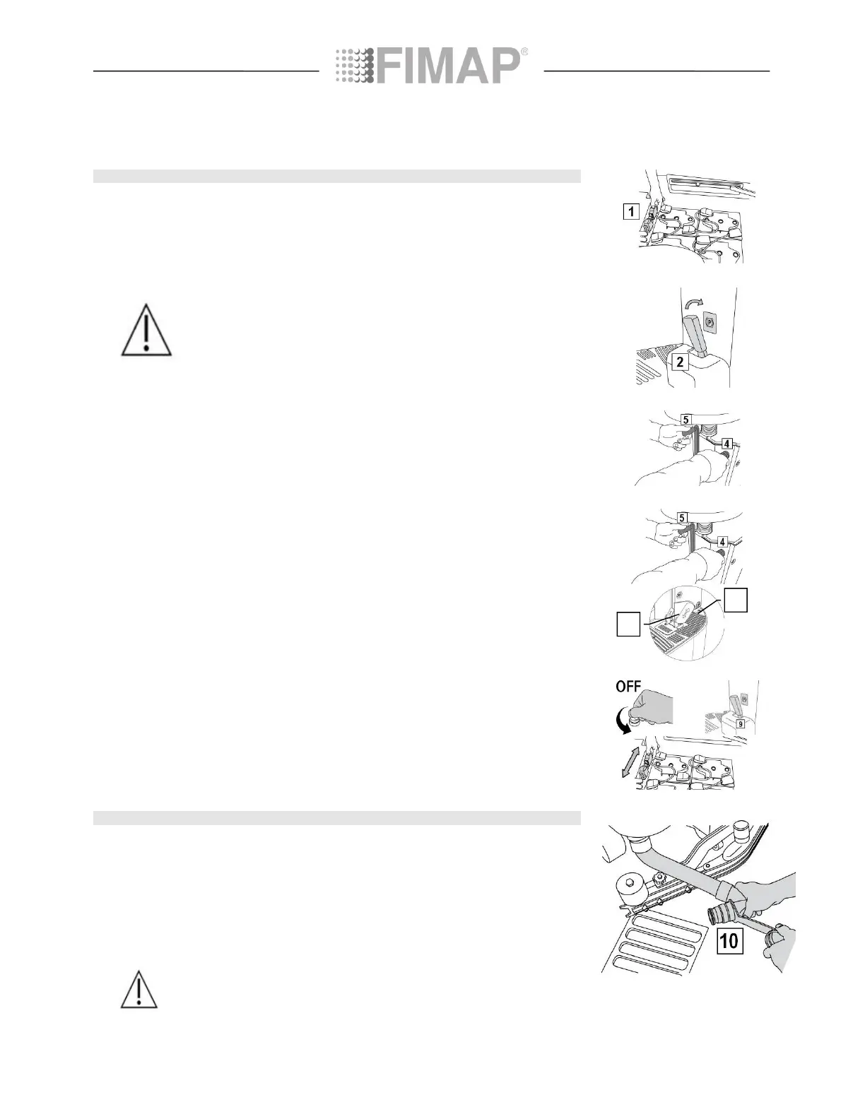 7. Lower the base by turning the right lever (4) clockwise, then lower the squeegee turning the left lever (5)