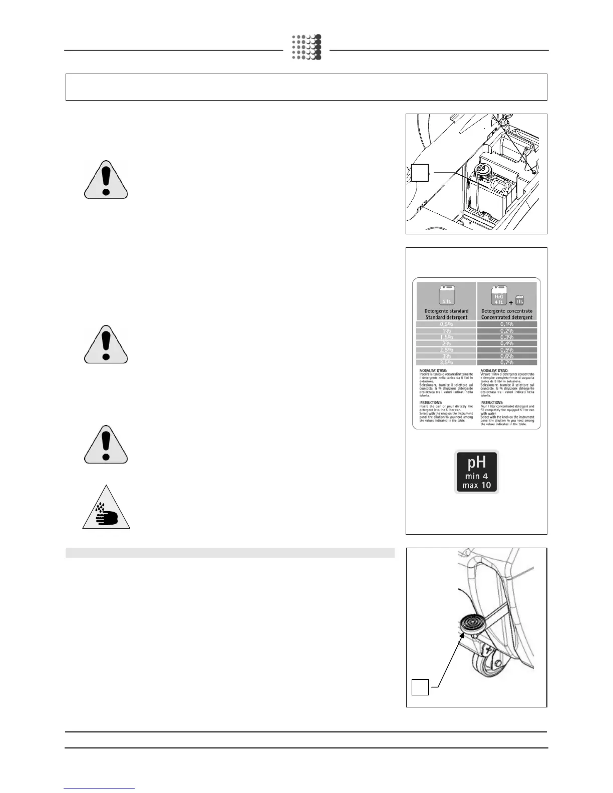 WARNING: always use low foam detergent. To avoid the production of foam,