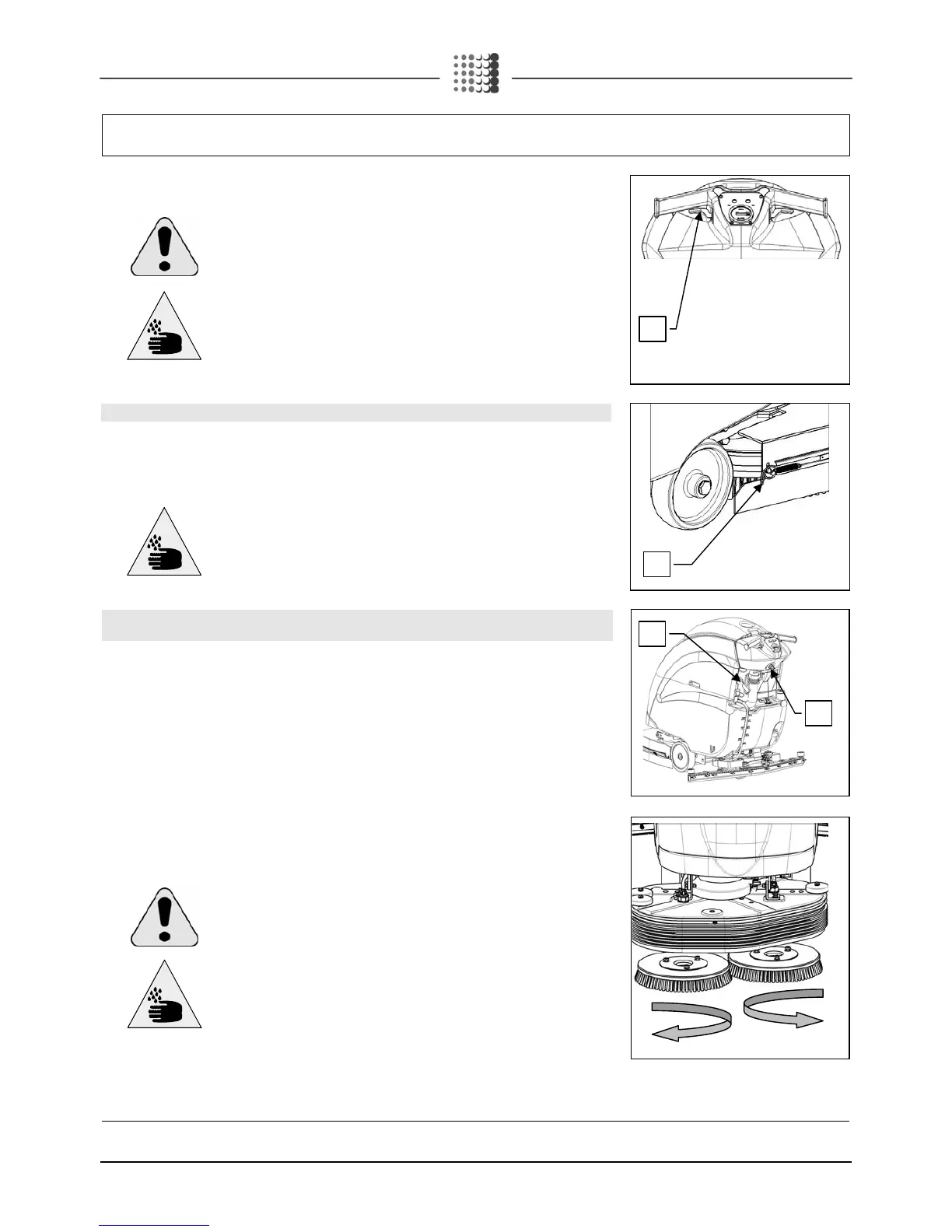 5. Using the "man present" lever (2), the brush is automatically hooked up.
