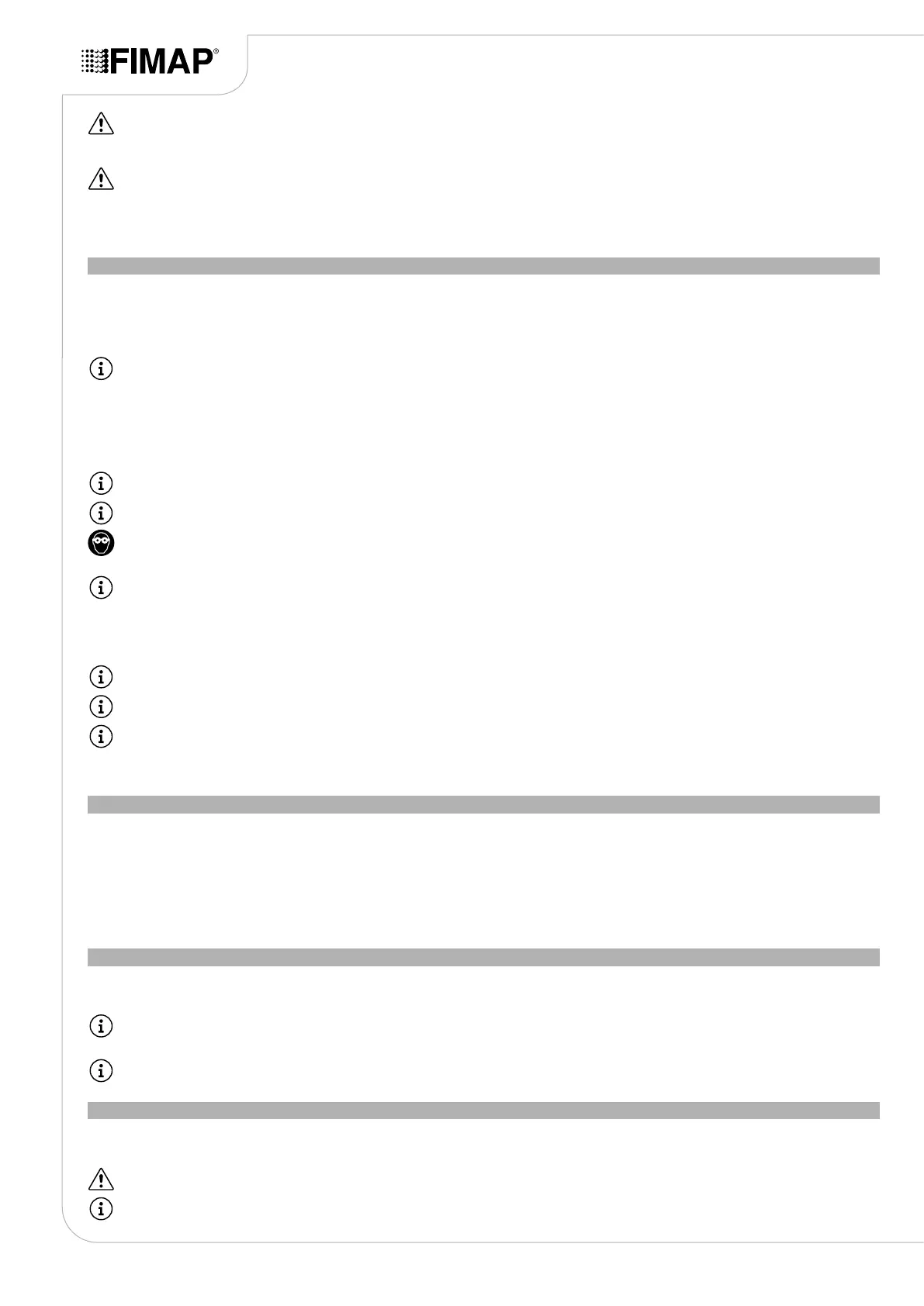 CAUTION: If the machine is used in dangerous areas (e.g. petrol stations), the relative safety standards must be observed. It is forbidden