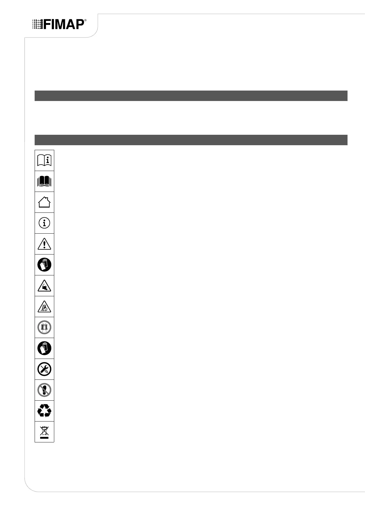 Indicates that the operator should always wear protective gloves, to avoid the risk of serious injury to his hands from sharp objects.