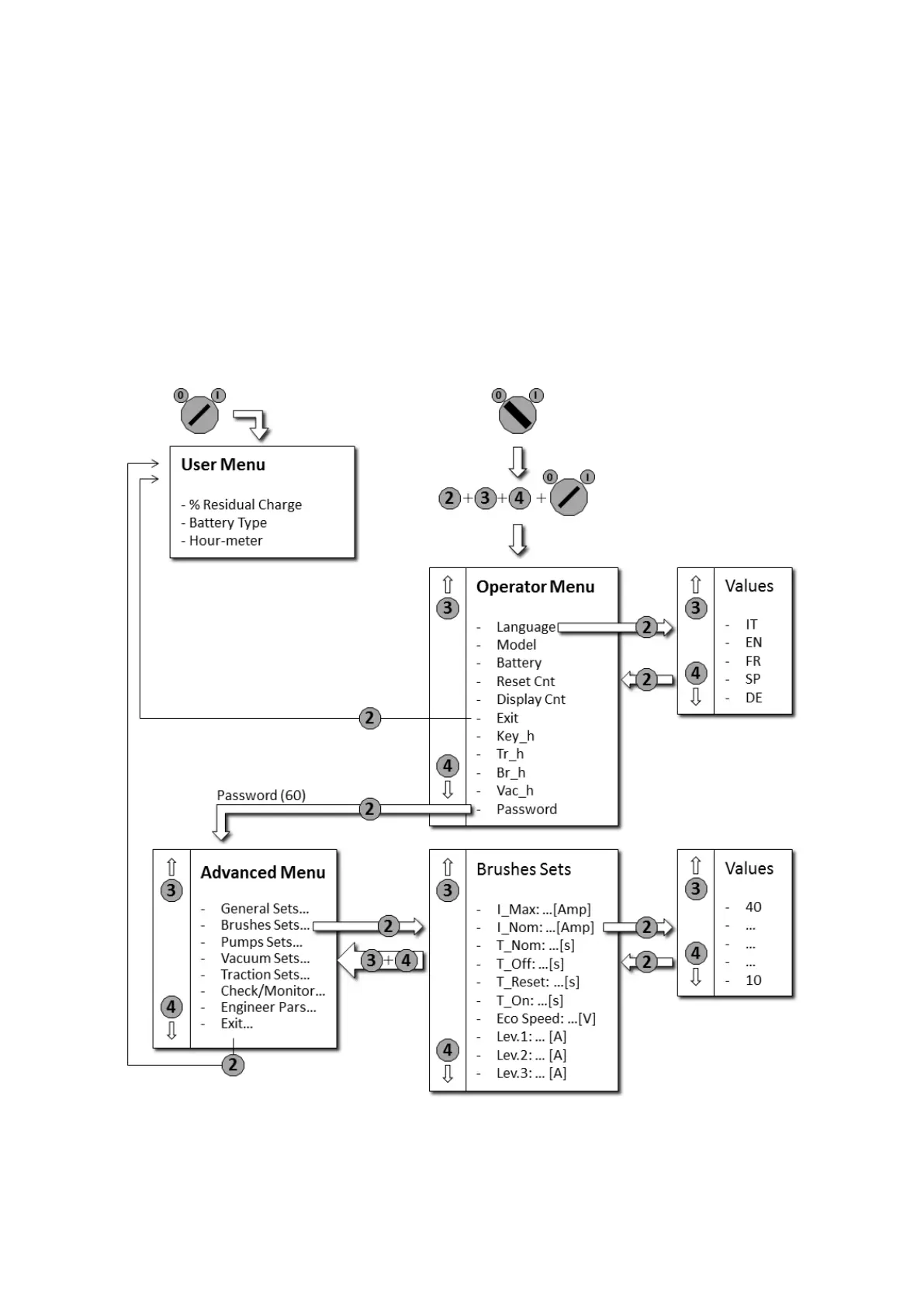 • Press simultaneously the buttons 2,3,4.