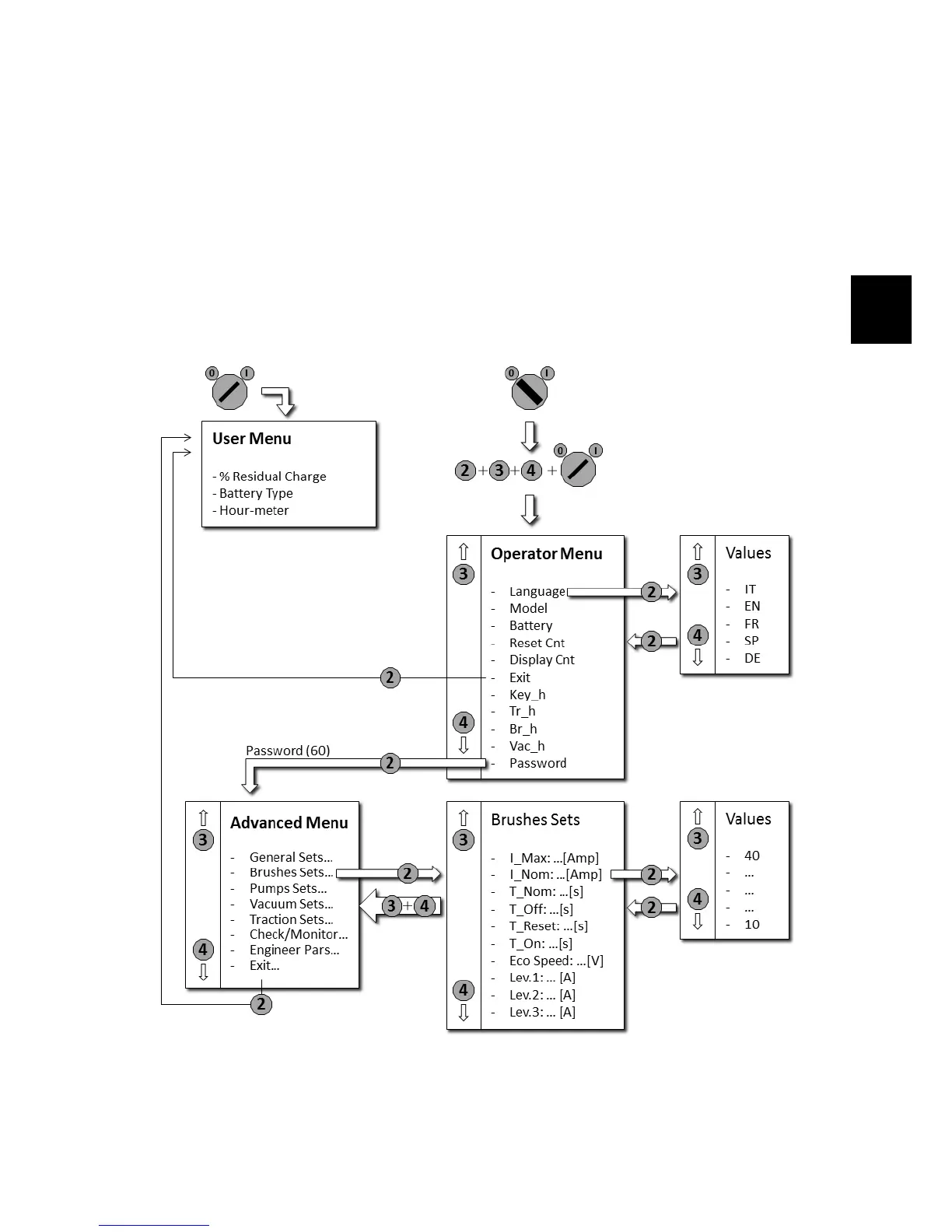 • For the submenus of the Advanced Menu, refer to the specific tables.