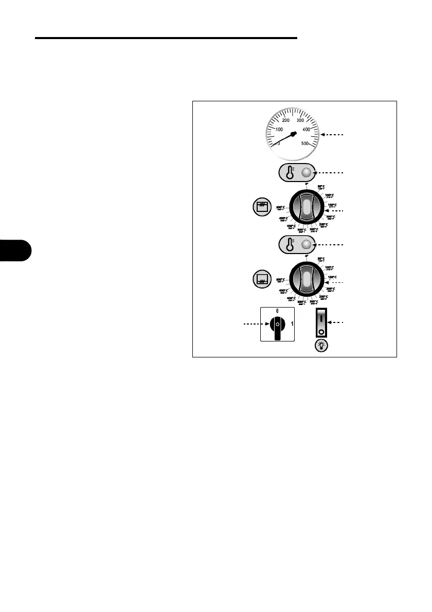 E) Indicator light: when on it means that the bottom electrical resistances are on. The light