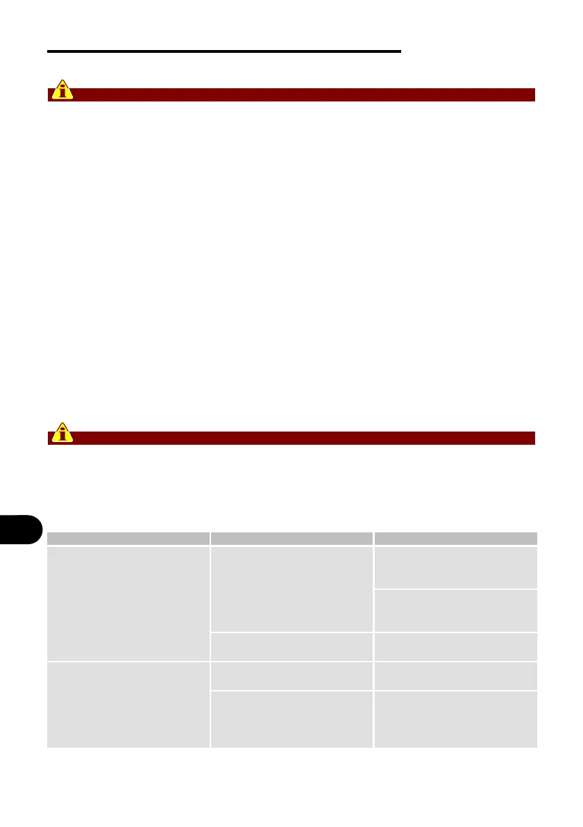 Se se verificarem anomalias que não estão descritas na tabela, o utilizador poderá
