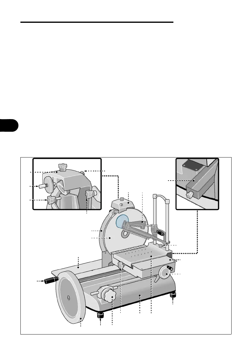 – L'affettatrice a volano è un'apparecchiatura ad azionamento manuale, progettata e co-
