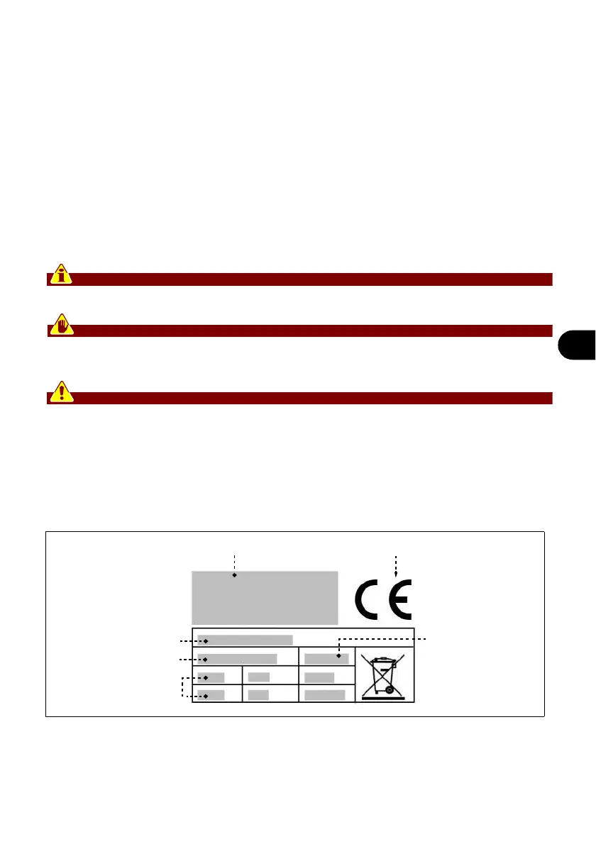 The illustrated identification plate is applied directly on the equipment. It includes references