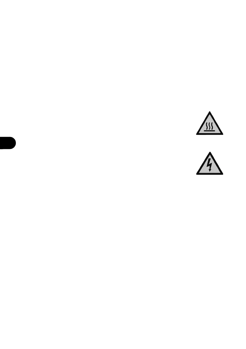 – Burn hazard: warns to be careful of hot surfaces.