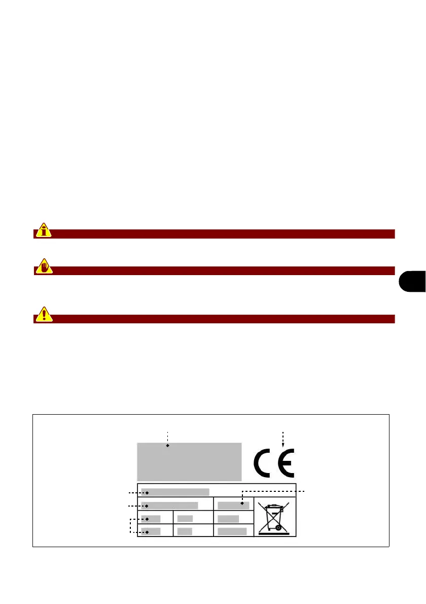 La plaque signalétique représentée est appliquée directement sur l'appareil. Elle contient