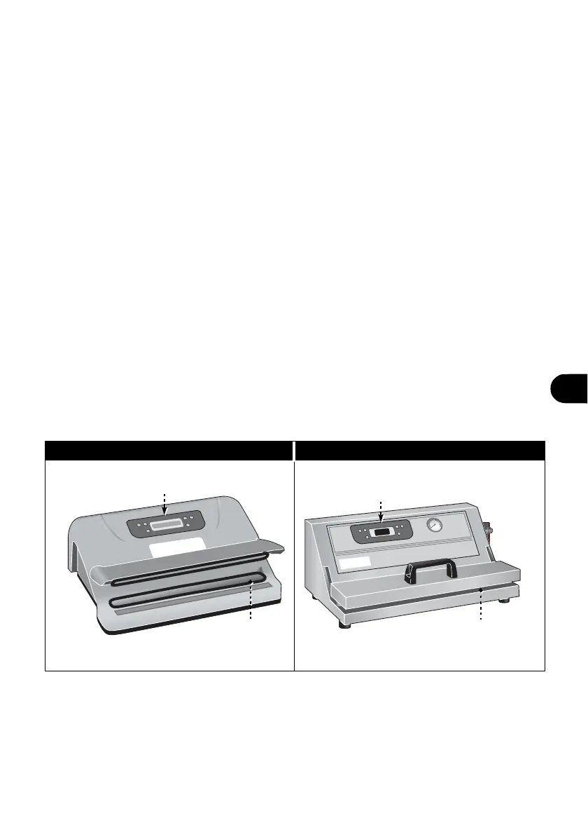 B) Barre de soudure: pour fermer hermétiquement les sachets.