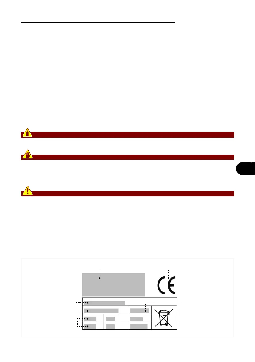 La plaque signalétique représentée est appliquée directement sur l'appareil. Elle