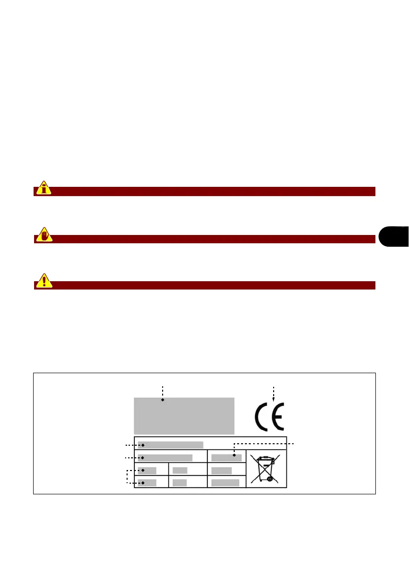 The illustrated identification plate is applied directly on the equipment. It includes refer-
