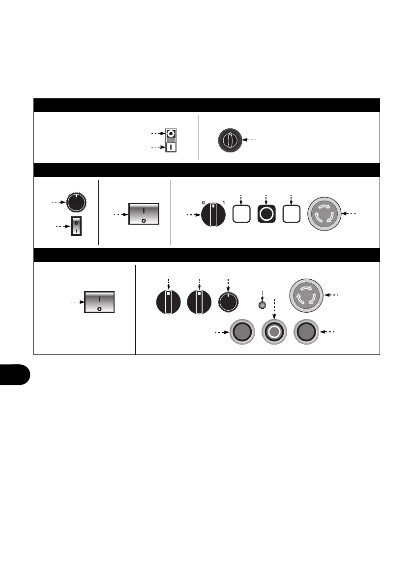 A máquina está equipada com os dispositivos de comando listados, necessários para
