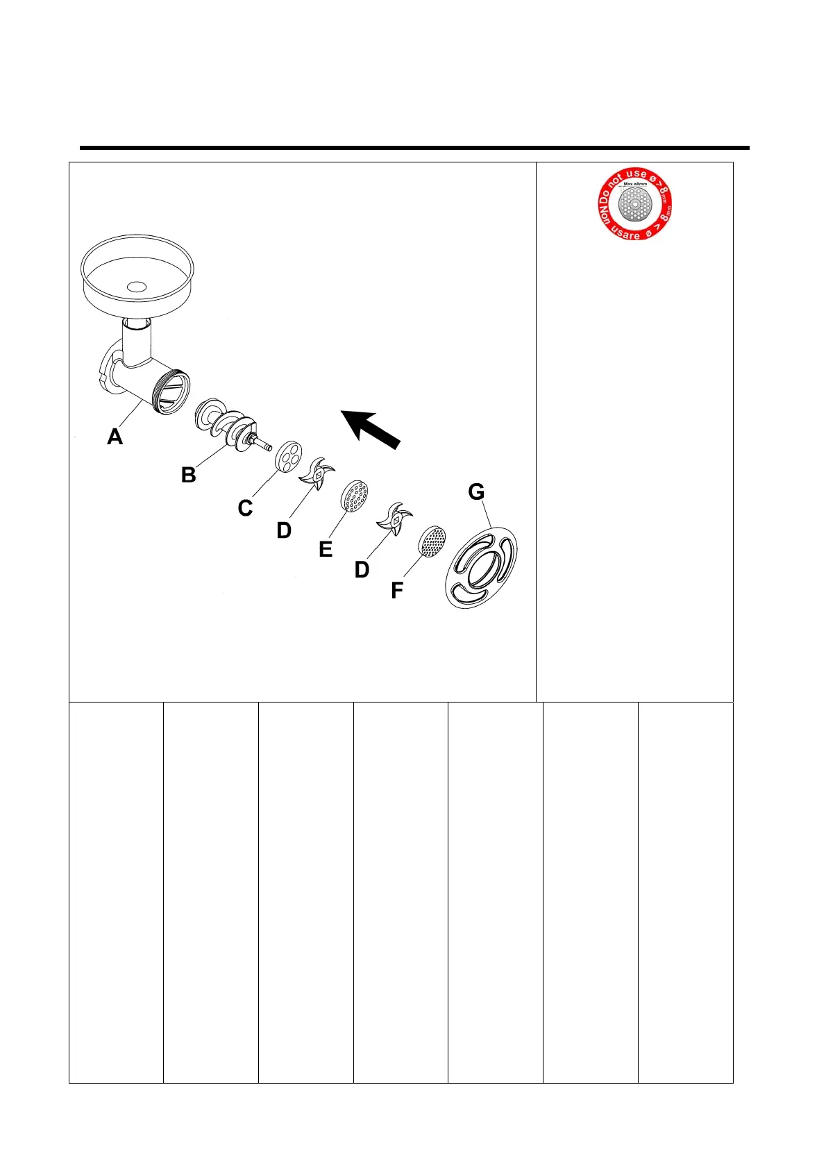 ESQUEMA DE MONTAJE GRUPO TRITURADORA DE CARNE UNGER • СХЕМА МОНТАЖА УЗЛА