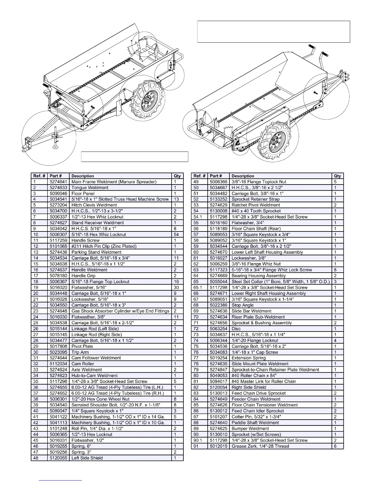 **Refer to all detail views for parts call-out