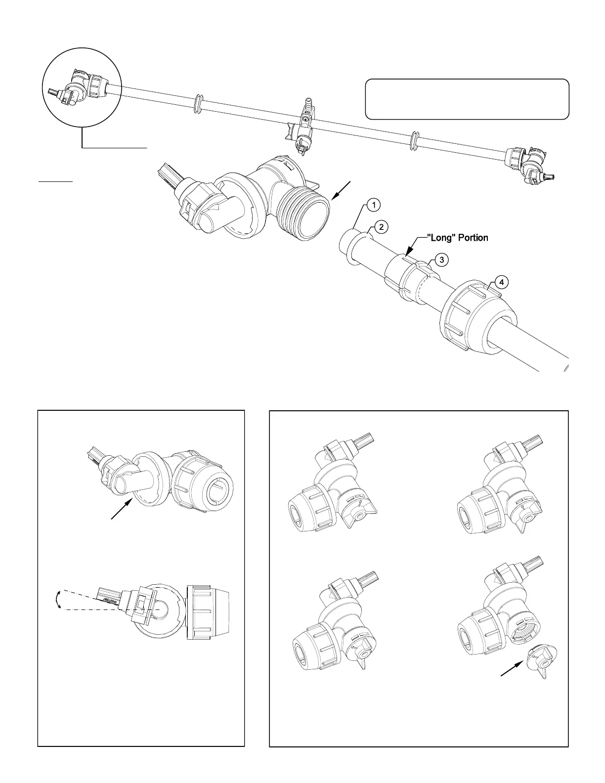 2. Slide the (complete) end nozzle assembly onto the stainless steel boom tube,