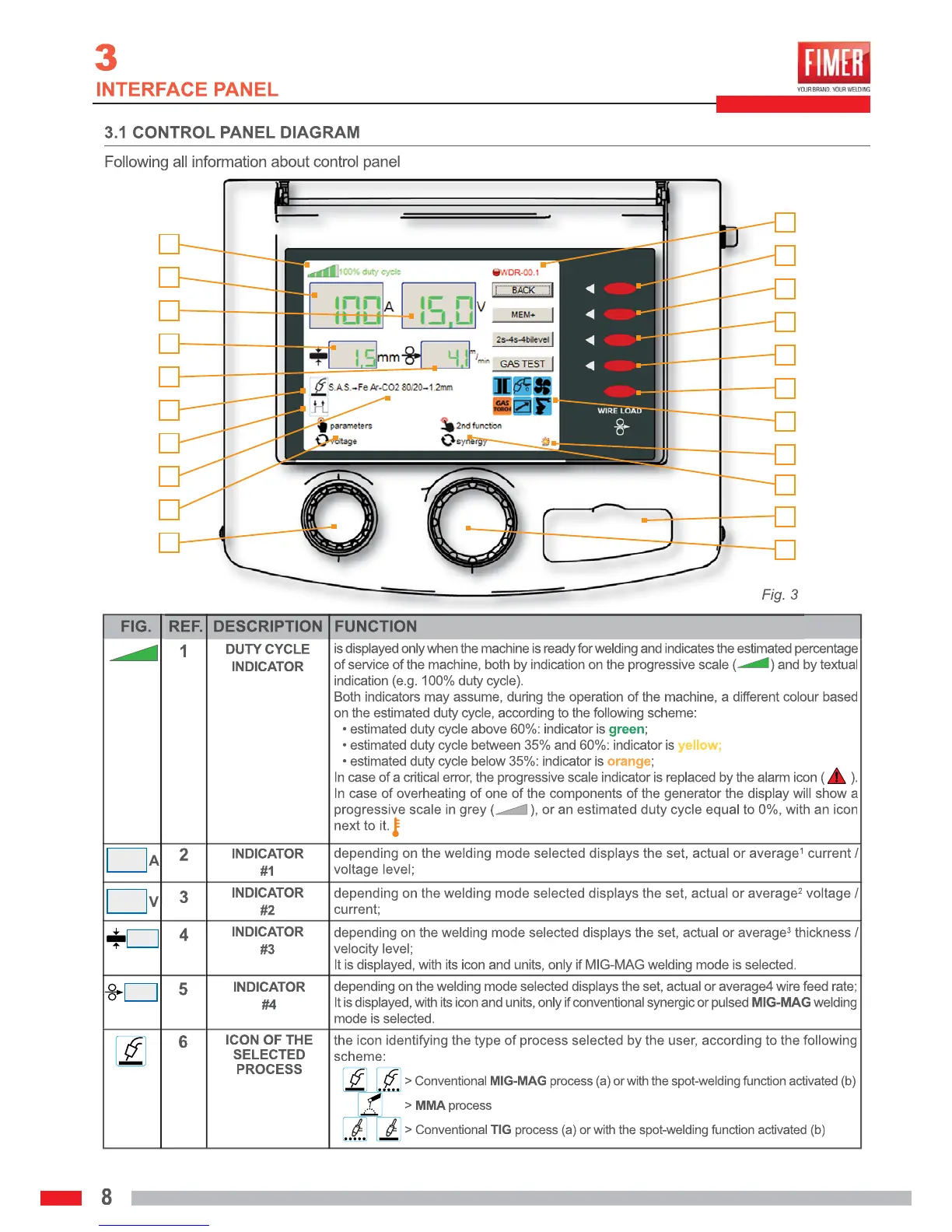 Fimer KRONOS 500 dual-pulse - Interface Panel Diagram and Controls