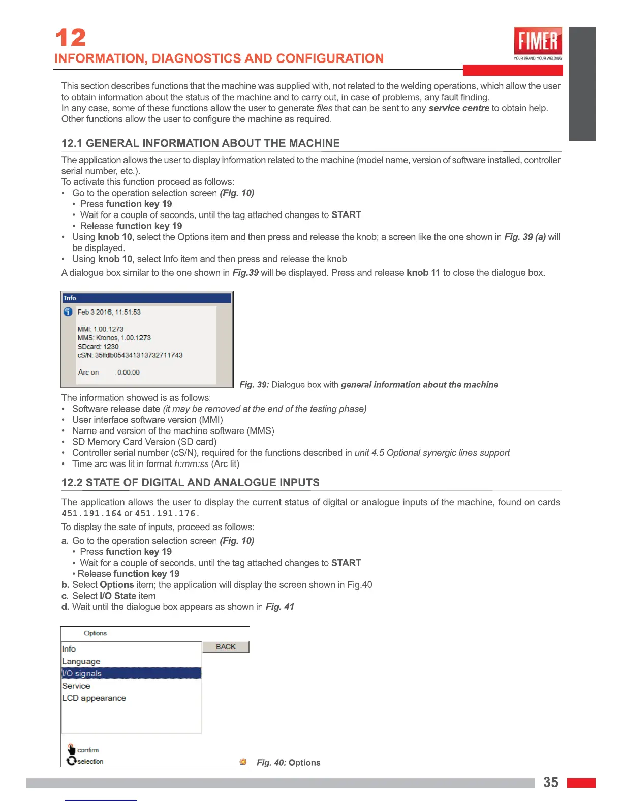 Fimer KRONOS 500 dual-pulse - Information, Diagnostics, and Error Log