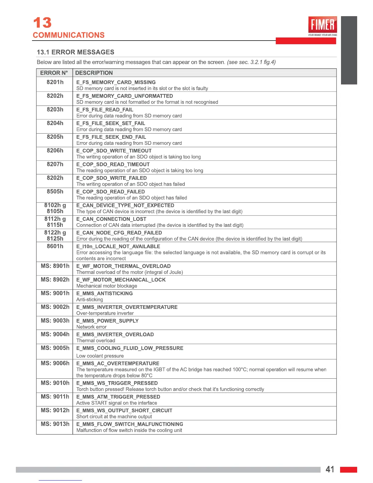 Fimer KRONOS 500 dual-pulse - Error Messages and Communications