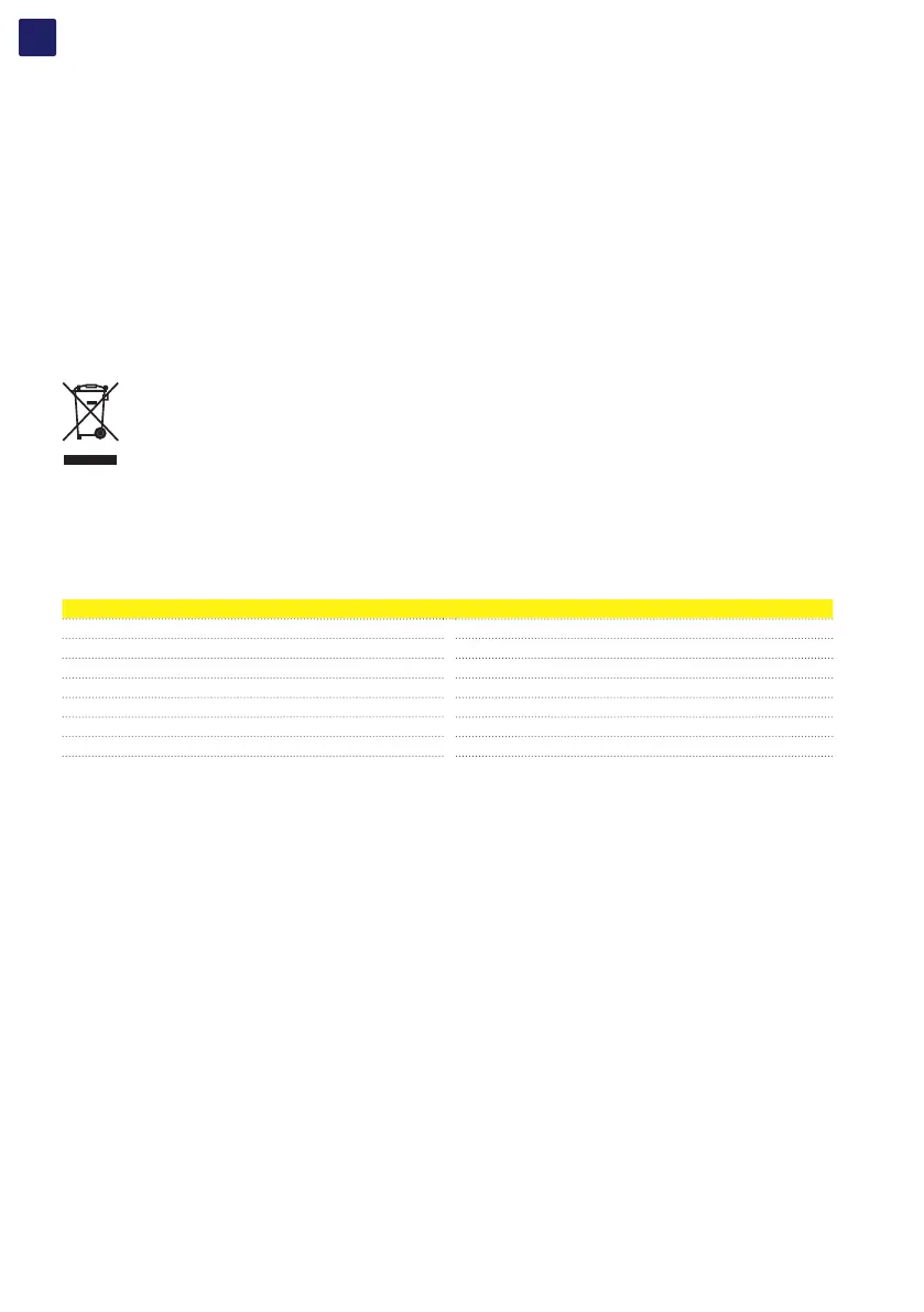 The symbol of the cancelled bin (where present) indicates that the product must not be disposed with domestic waste at the