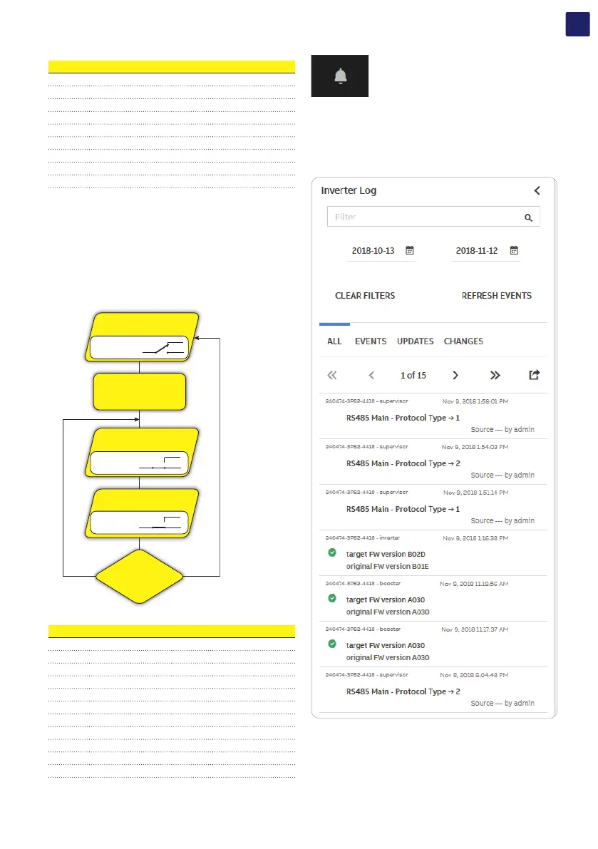 In the INVERTER LOG Section it’s possible to view the Alarm