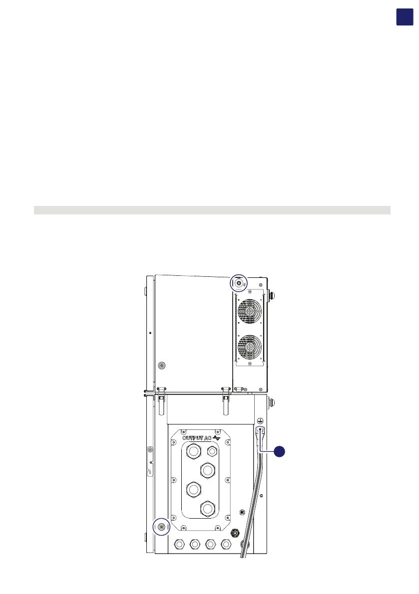 (both power module (01) and wiring box (02) - samples point circled in red) and the Protective earth point (ext.) (10) outside the inverter.