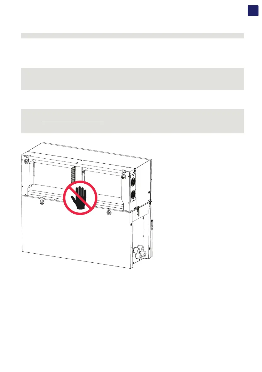 The power module (01) and the wiring box (02) must be lifted using the 4 handles (04) (to be ordered separately) or alternatively using