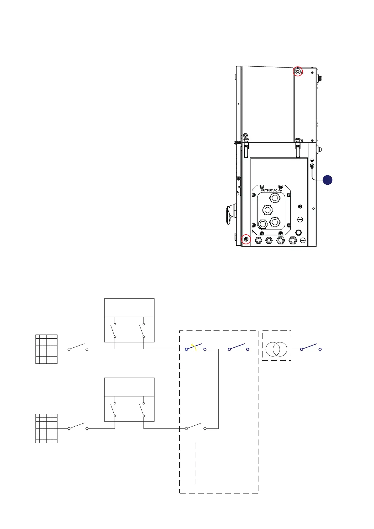 The diagram below represents a possible arrangement of the PV plant. Depending on the design