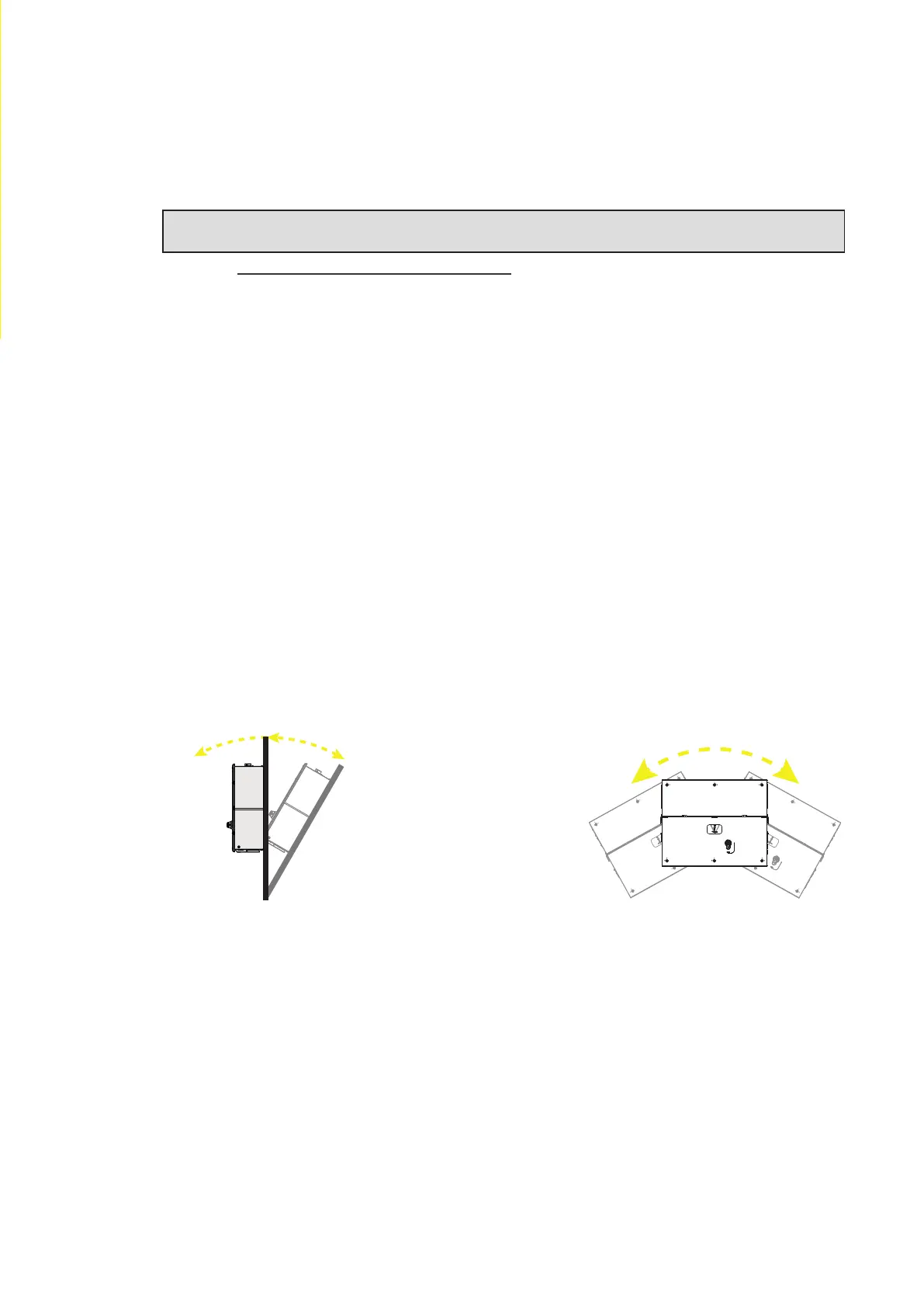 The unit can be installed with a maximum inclination as indicated in the figures below.