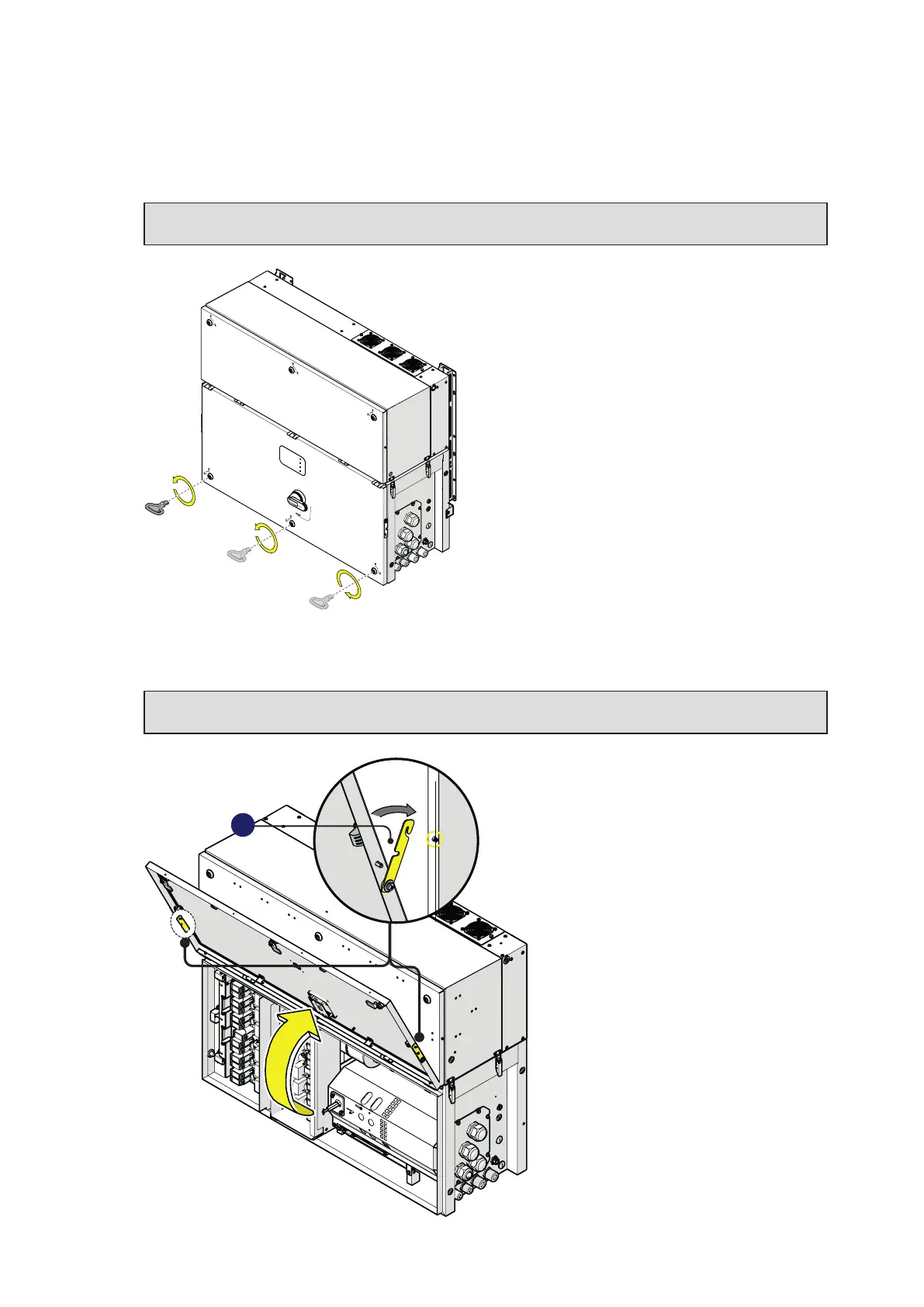 • Open the Wiring box cover (07) and use the cover support brackets (15) to lock the cover (07) in