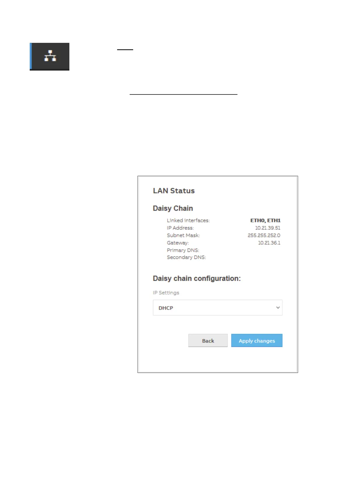 Daisy chain conguration: DHCP or Static: