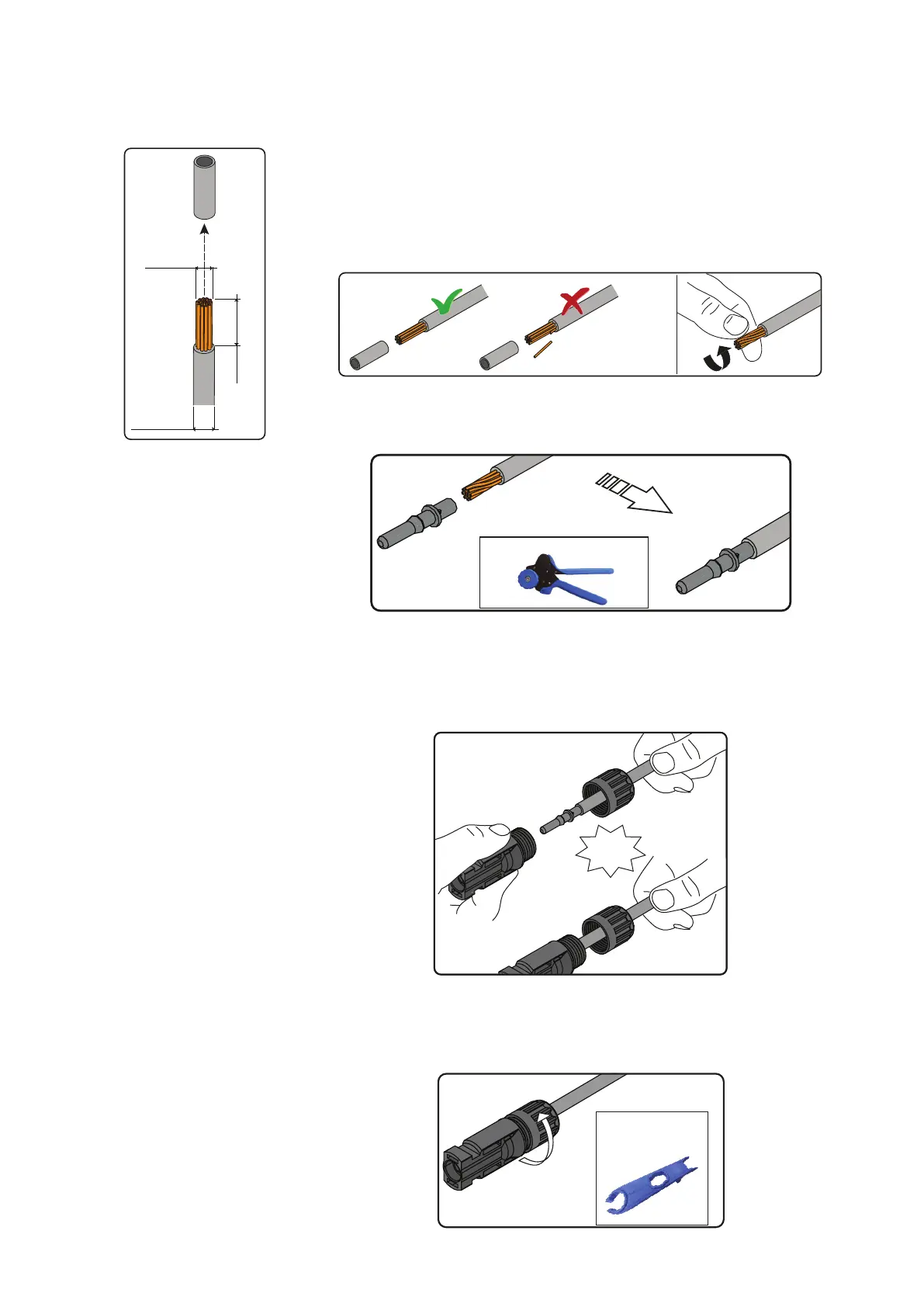 - Apply the terminal to the conductor using the designated pliers.