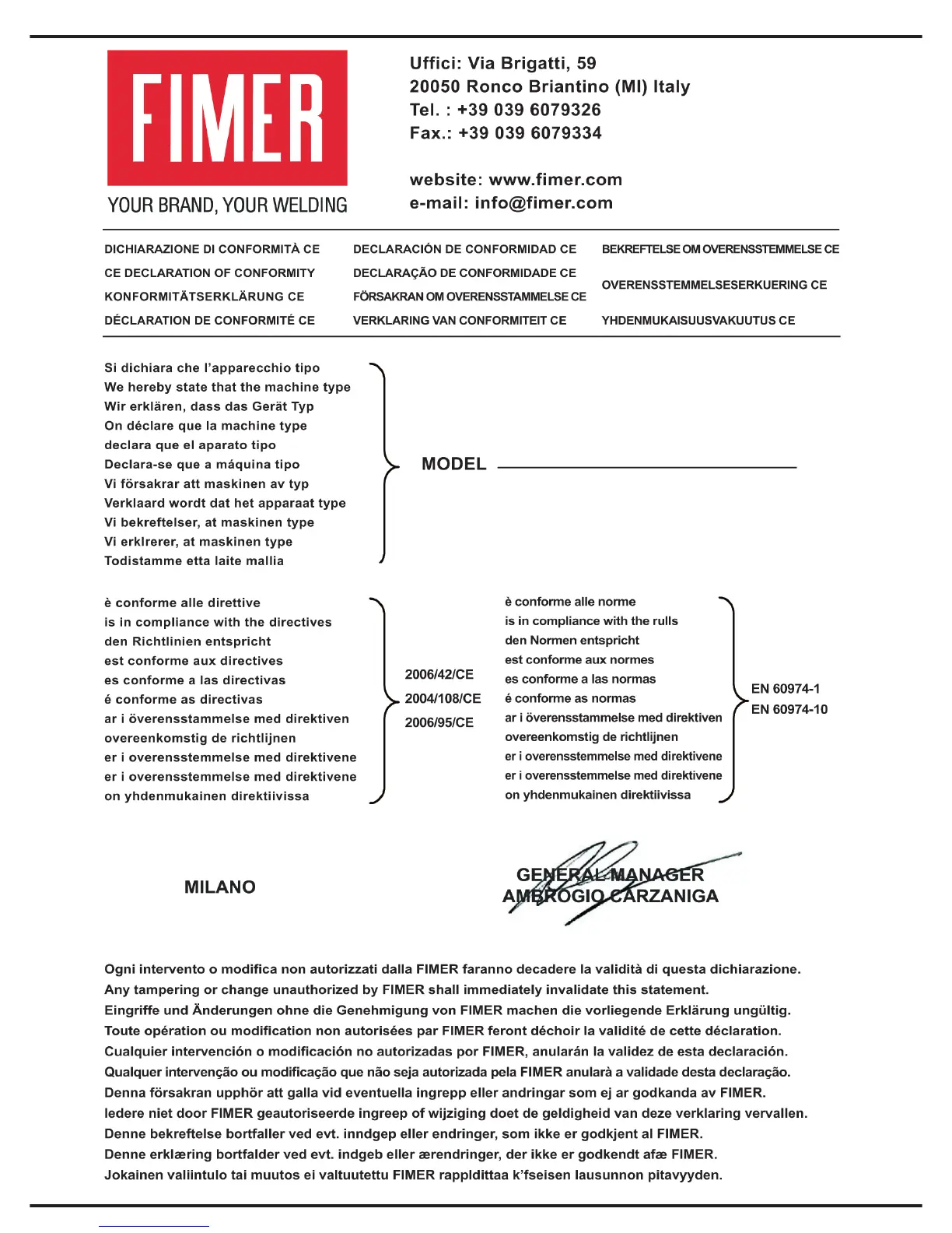 Fimer QUEEN 150 - CE Declaration of Conformity