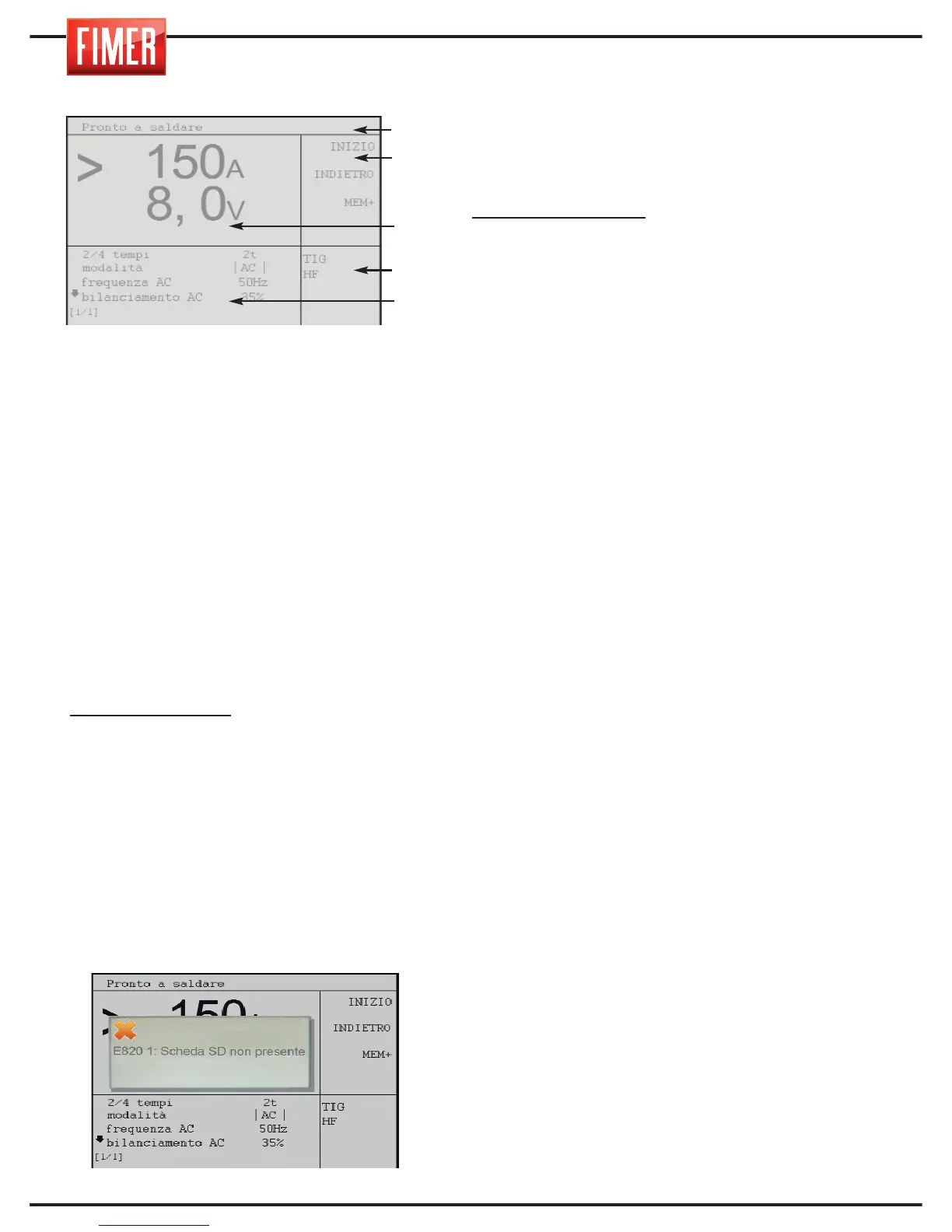 In modalità saldatura il display è diviso in 5