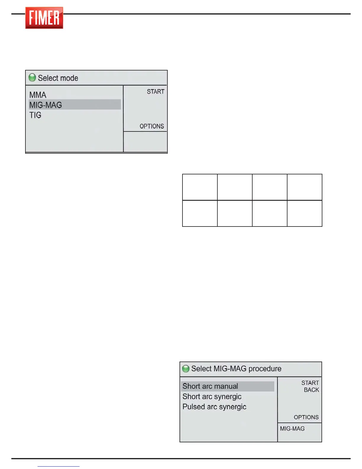 To select this welding mode :