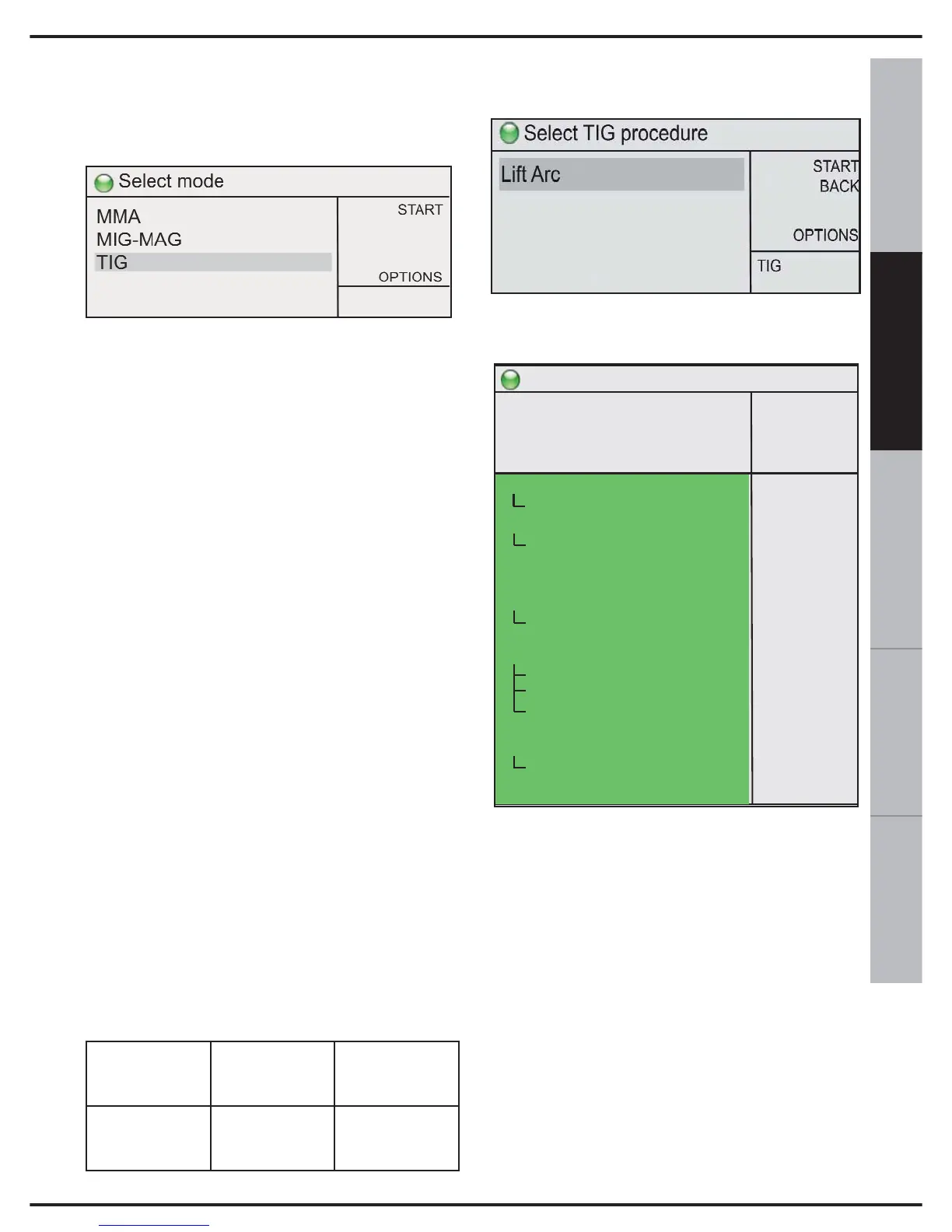 turn switch 10, select TIG and press