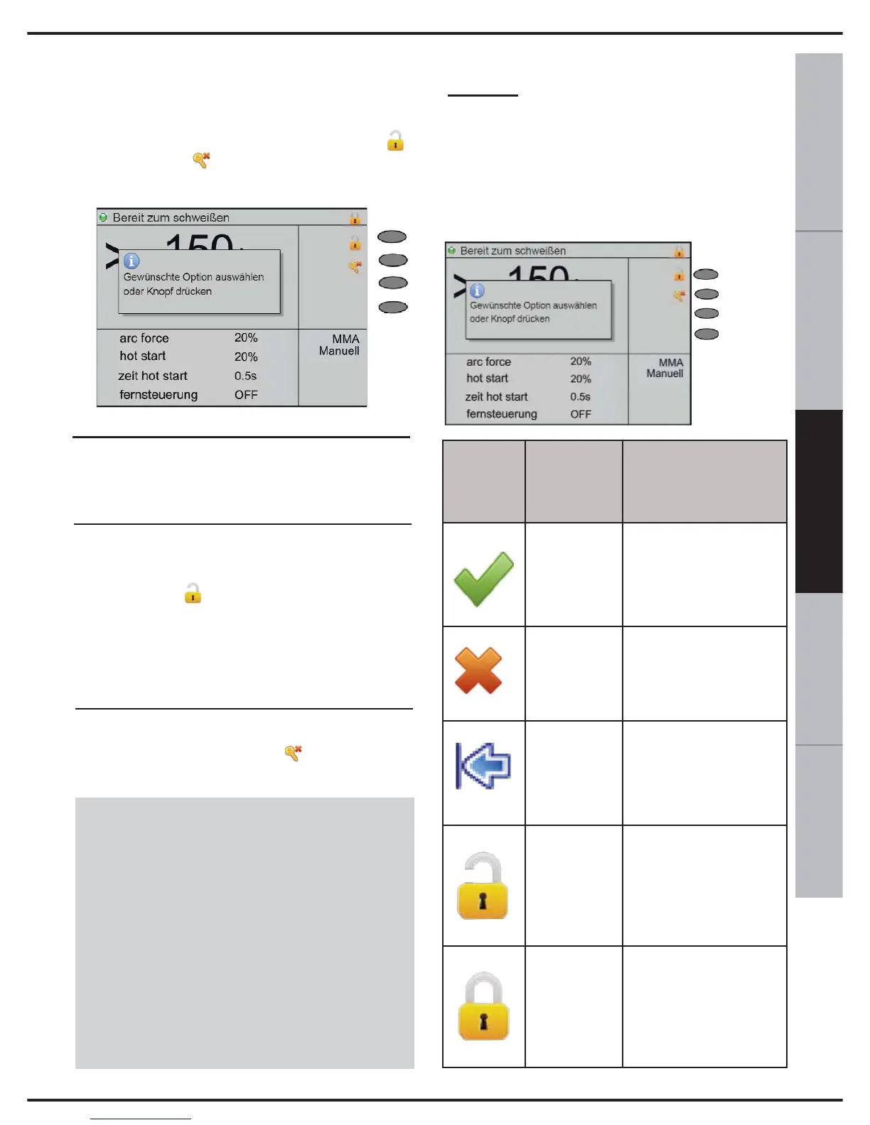 Schweißgerät erneut die Anzeige unter Abb.