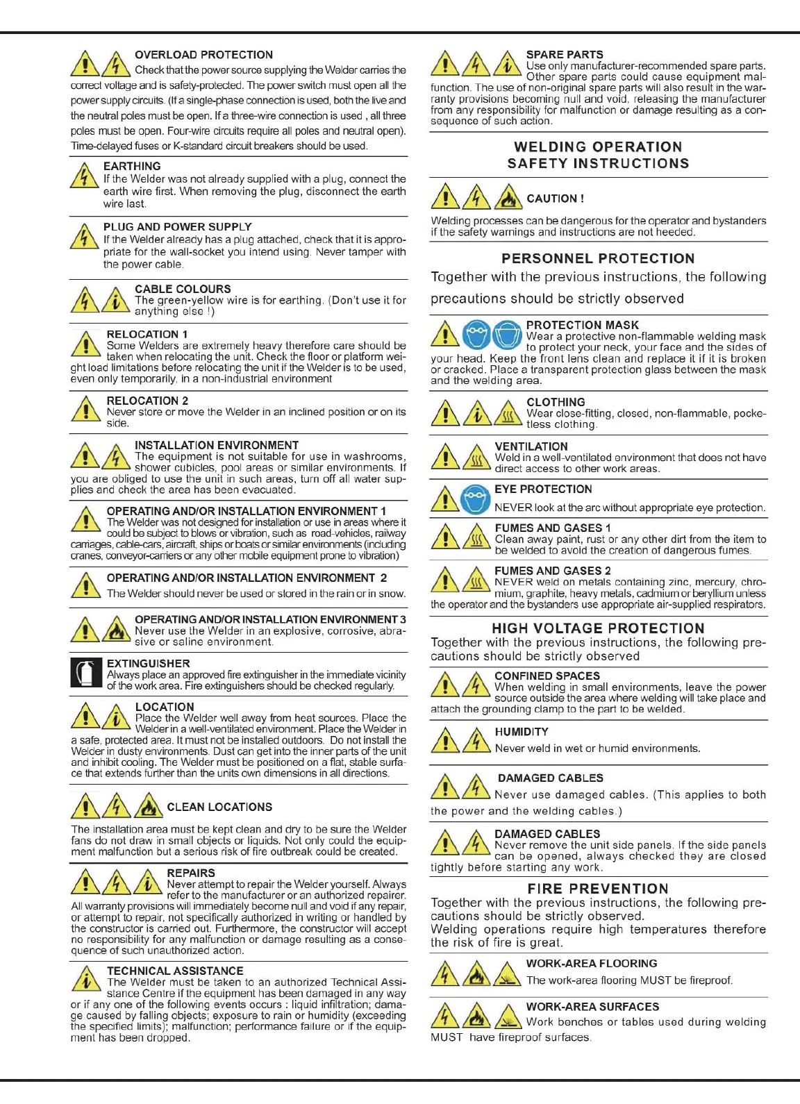 Fimer TT205 DC - Specific Operational and Electrical Safety