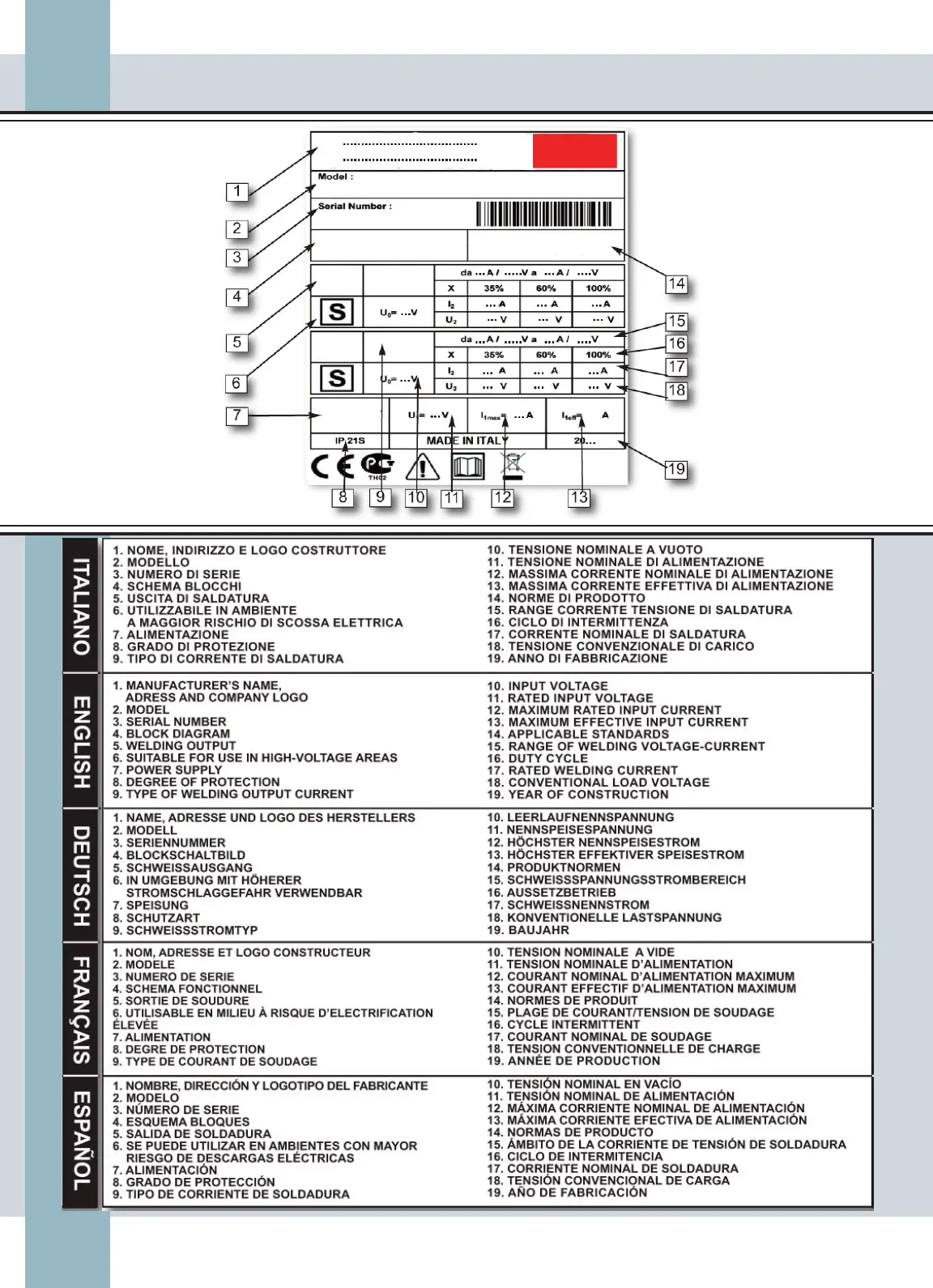 TARGA DATI, NOMINAL DATA, LEISTUNGSCHILDER,