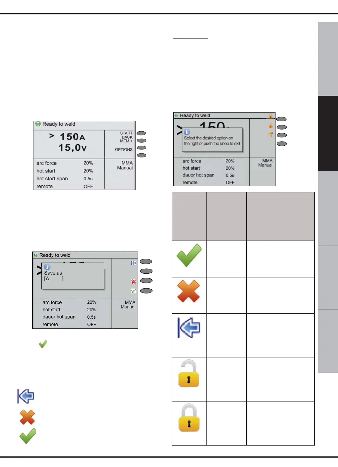 symbols/function buttons and pop-up