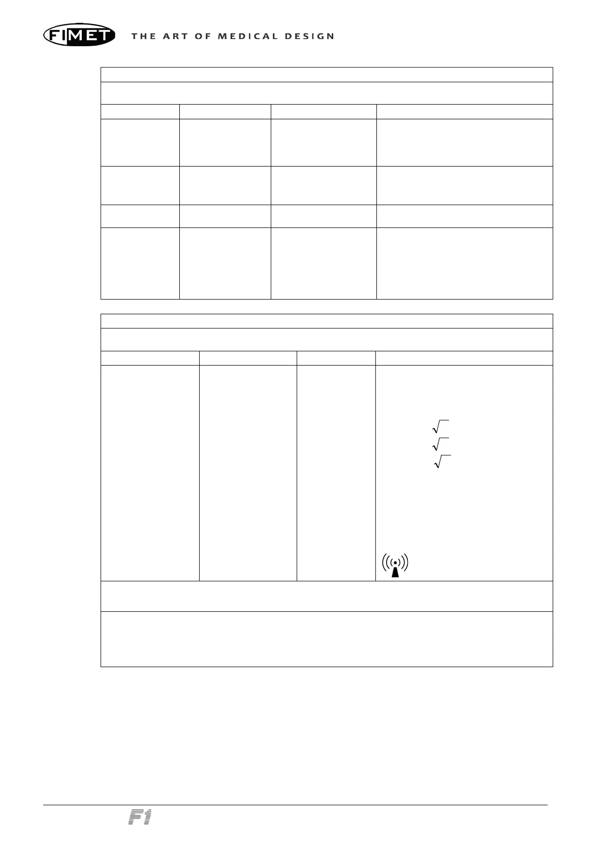 location of the Fimet F1 exceeds the applicable RF compliance level above, the Fimet F1 should be observed to verify normal operation. If