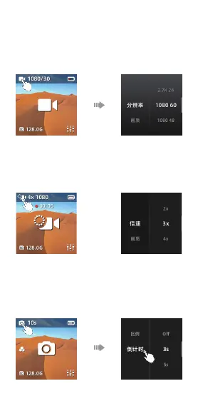 上下スワイプにて異なる項目及びパラメータセッティングを選択できま