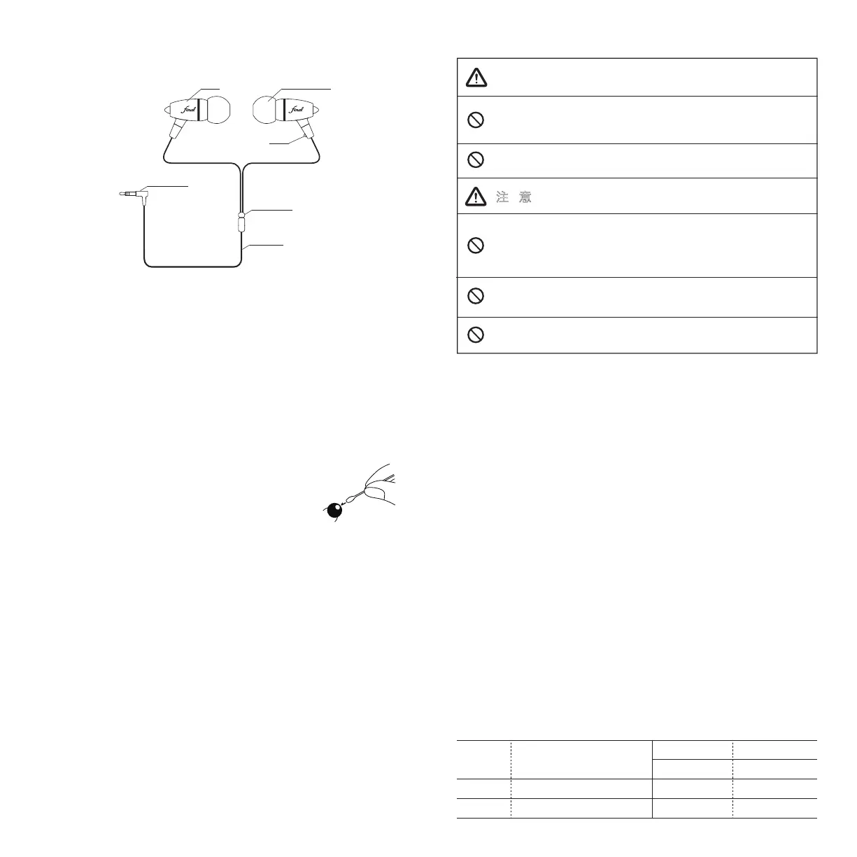 (2) イヤホンに強い衝撃を与えたり、水に濡らした場合。ケーブルに無理な力がかかるよう