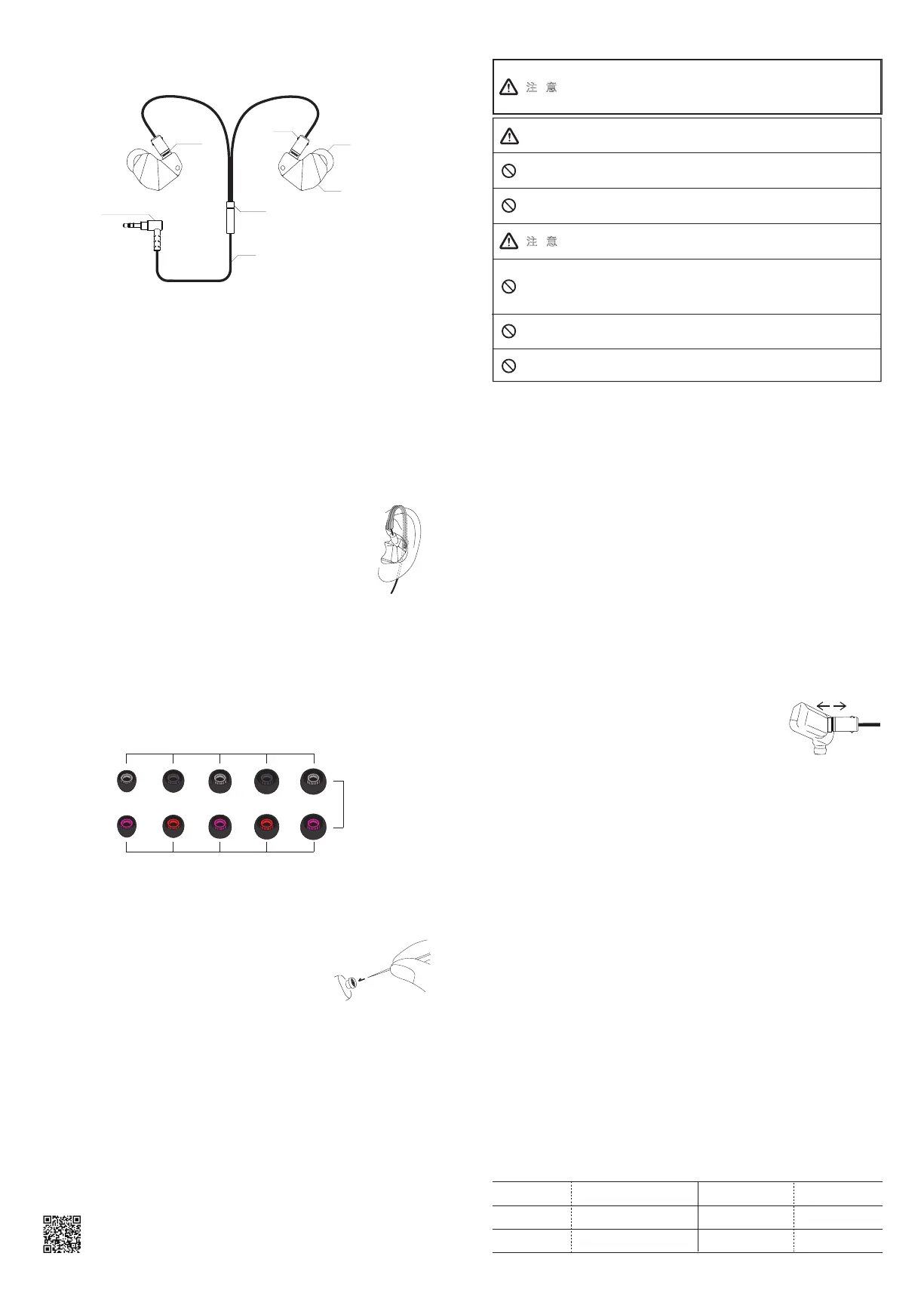 ※使用耳挂有助于稳定耳机的位置,同时减少耳机线的颤噪音。