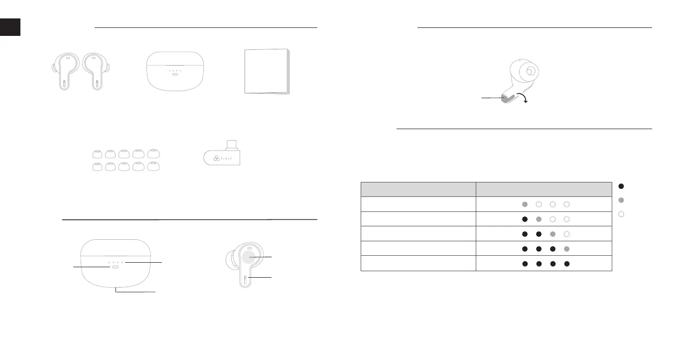 below. While charging, the LED indicator on the charging case will light up according to the battery