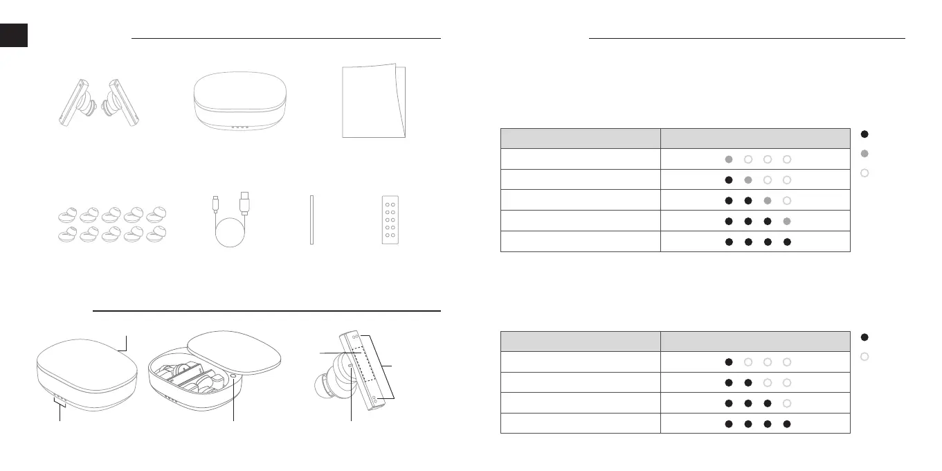 the LED Indicator of the charging case will light up in different patterns depending on the battery